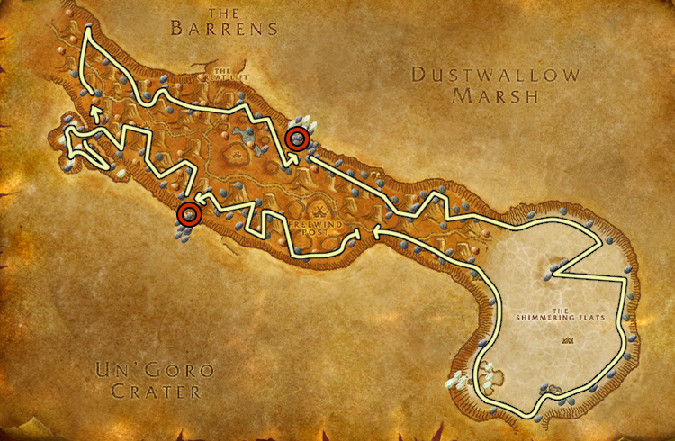Desolace is also a very good place to farm Iron Ore. This route is easy to follow and you don't have to go inside any caves.