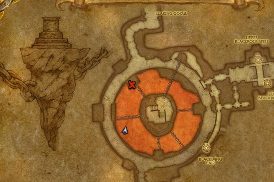 Fly down to the location marked with X on the map. To enter the instance, you have to talk to Lothos Riftwaker, he will teleport you to Molten Core.