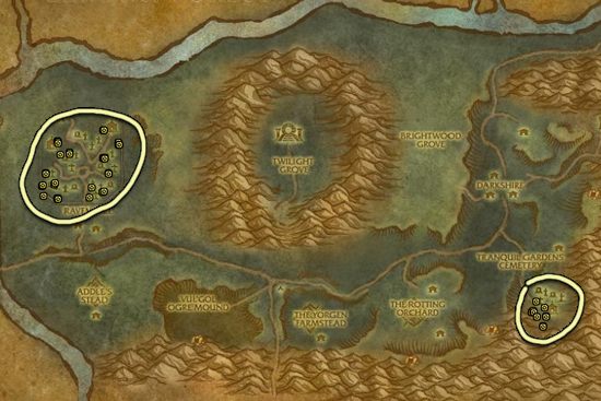 If your level is not high enough to solo Razorfen Downs, you can try farming between these 3 graveyards in these 3 zones. If you have a fast flying mount, you will have to wait for respawns because it takes around 3 minutes to do a full lap in these 3 zones, but Grave Moss's respawn time is around 5-8 minutes.