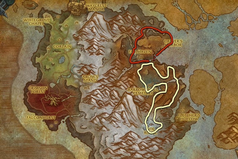 This route goes through an Alliance town, so horde players might have some trouble here, but you can just run past the guards with mount, they shouldn't kill you.