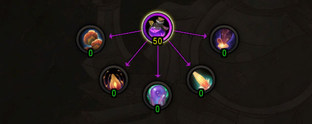 This is the general Alchemy tree. The central node provides a large Skill bonus to all Alchemy crafts, and there are five sub-specializations, each tied to one of the new War Within herbs.
