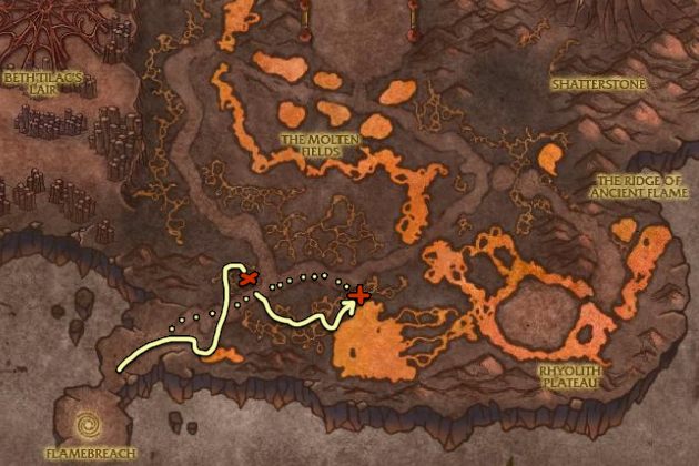 The entrance to Firelands is located at Mount Hyjal. Go inside, then kill every scorpion, turtle and core hound on the marked area, but do it in two pulls, else you won't be able to skin them fast enough, and the corpses will start despawning.