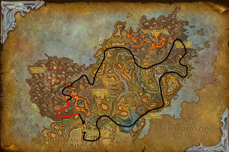 The red part of the route is sometimes filled with elite mobs, and you will get shot down from the air, then you should skip that part. (there is an event there that sometimes replaces these mobs with friendly mobs)