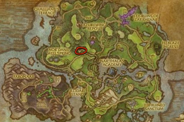 Go to Azsuna to the marked area and clear the bears around the small lake, so you won't get interrupted while you have the buff up. Use