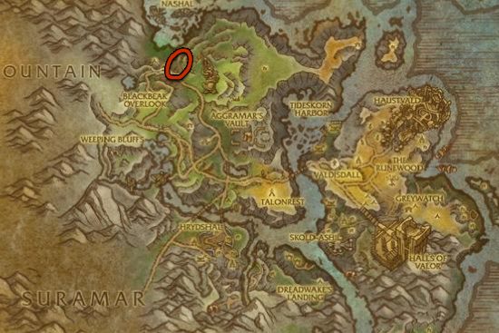 This one is also the great place to farm Big Gamy Ribs. Sated Hillstrider will constantly keep spawning around the marked area.