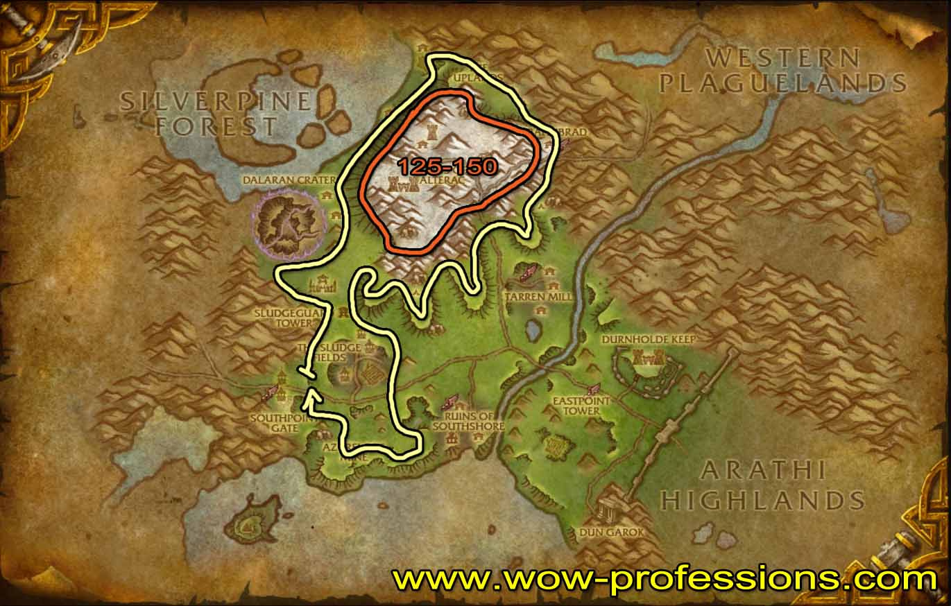 Horde players can stay in this zone up to 160 or even a bit more if they want to because there is a herbalism trainer in Tarren Mill, so you can visit her at 150. The reason I recommend you stay here until 160 is that this way when you go to the next zones, you will be able to gather Khadgar's Whisker right away.