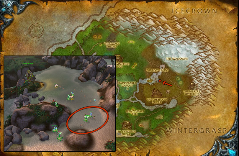 Farming Bonescythe Ravagers in Sholazar Basin is also a good farming place. But, make sure you are farming at the marked spot, if you farm too close to the big elite mob there, she will one-shot your mobs, and you won't be able to loot them.