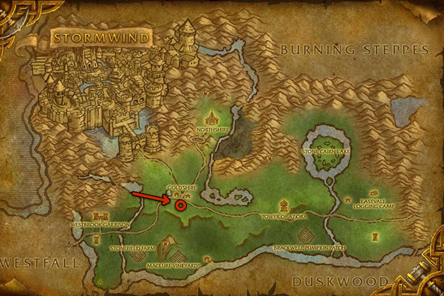 You can find the portal to the Darkmoon Faire on the south side of Goldshire in Elwynn Forest.
